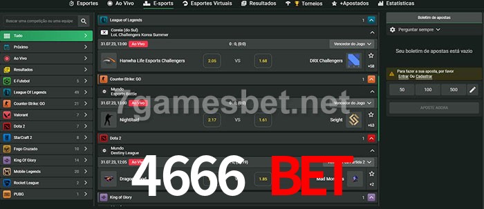 O 4666 bet oferece uma grande seleção de opções de apostas em e-sports com probabilidades competitivas